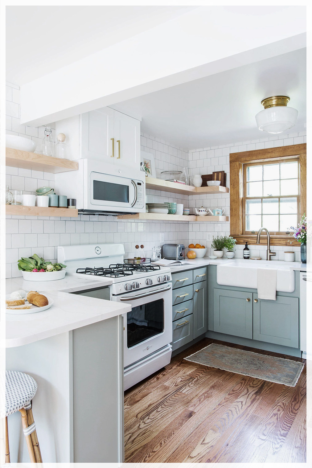Do you like soft? Well, you can go with pastel brown as the image shown here. Perfectly match between two soft colors in this kitchen, making you love roaming around this kitchen. Furthermore, two hanging lighting add a classy atmosphere to help you finish your meal.
