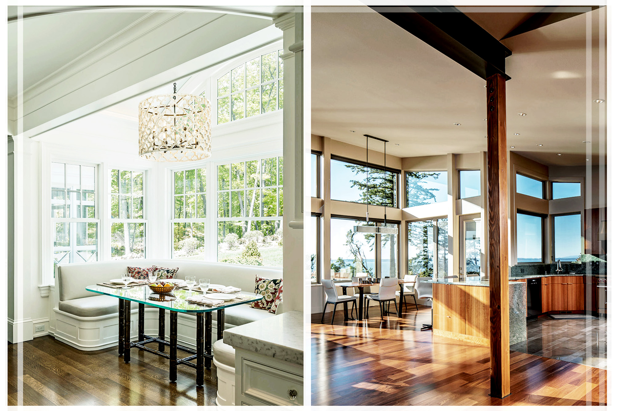 This is an interesting design for a kitchen and dining room combo. The breakfast nook is just a great idea to apply. And not to forget the accessories in soft colors, patterns and textures; they create a chic look of the space.