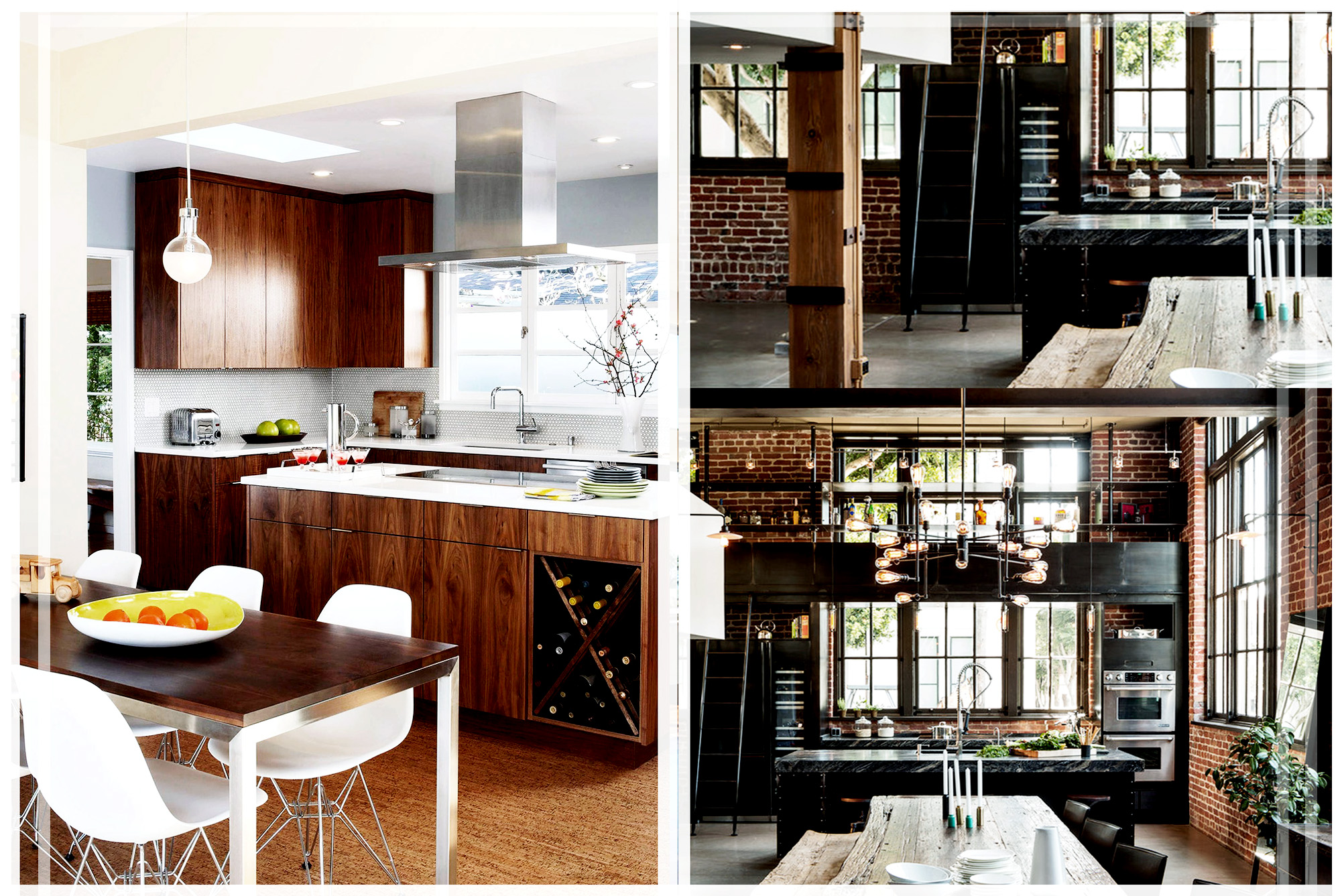 For an industrial look, this kitchen dining room combo design applies some metal accessories seen from its pendant lights and appliances. The brick wall on one side of the wall stands out and gives a different look to the whole urban design.